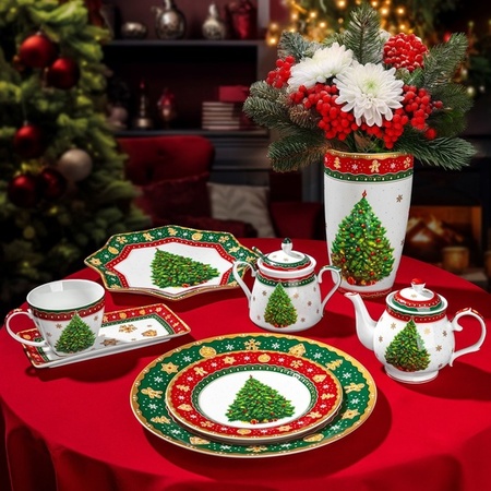 Дополните праздничную атмосферу красивой посудой и скатертями для незабываемого новогоднего стола.