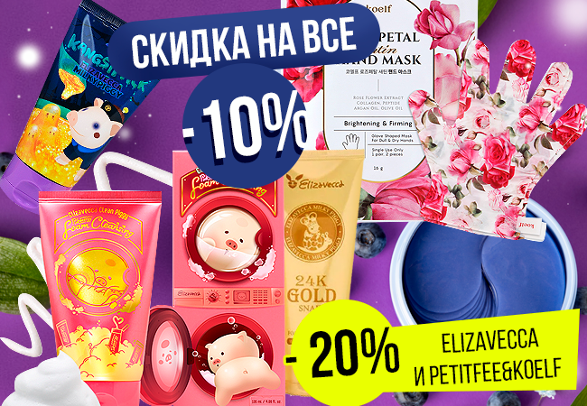 10% на ВСЕ и 20% на ELIZAVECCA и PETITFEE & KOELF