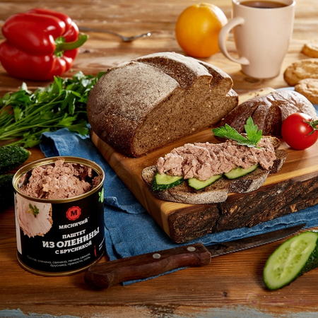 Паштет из оленины с брусникой 240г всего 75 рублей!