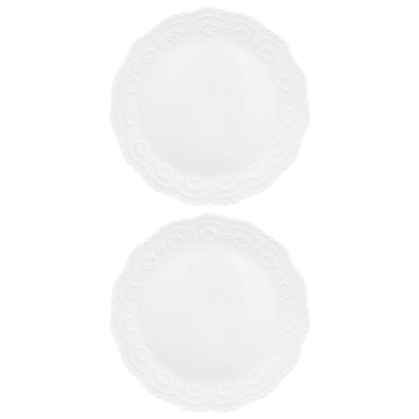 Набор из двух круглых тарелок для закуски Elan Gallery "Белый узор" с ажурными краями выполнен из белого фарфора в классическом дизайне. Размер каждой тарелки – 20,5х20,5х1,8 см. Большие тарелки для подачи на стол ваших любимых блюд станут незаменимой вещью в любом доме. Набор отлично подойдёт для любых закусок, например, фруктов или нарезки. Каждая тарелка станет незаменимым помощником при сервировке завтрака, ужина или вторых блюд на обед. Эргономичная форма позволит разместить на них любую еду, от блинов до пасты. Фарфоровая посуда отличается от керамики повышенной плотностью. Фарфор не впитывает цвет продуктов и не деформируется от влаги, чему может быть подвержена керамическая посуда. Универсальный набор идеально впишется в любой интерьер вашей кухни и подойдёт при сервировке стола не только в будни, но и на праздник. Можно использовать в микроволновой печи и мыть в посудомоечной машине. Поставляется в стильной картонной упаковке. Станет отличным подарком для любой хозяйки, которая ценит стильную сервировку. Понравится любителям посуды в скандинавском стиле. Серия «Белый узор» позволит собрать сервиз в едином стиле и сможет стать настоящим украшением вашего дома.