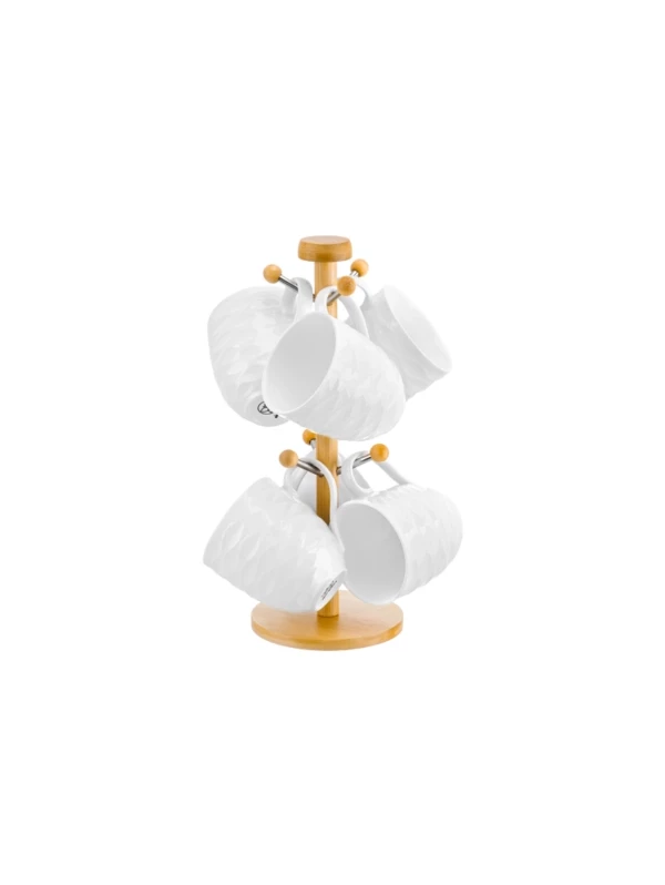 Набор состоит из 6 кружек серии «Айсберг волны» объемом по 320 мл на подставке из бамбука. Размер каждой кружки – 12х8,5х9,5 см. Размер подставки – 12,5х12,5х32 см. Кружечки выполнены из качественного фарфора и украшены рельефными узорами. Подходят для любых напитков: чая, кофе, лимонада или сока. Кружки помогут провести множество приятных завтраков с капучино или латте, а также уютных чайных вечеров. Пейте из них кефир или молоко всей семьёй. Фарфоровая посуда не впитывает цвет напитков и долгое время будет выглядеть, как новая! Без бамбуковой подставки кружечки можно использовать в микроволновой печи и посудомоечной машине. Бамбук нельзя замачивать! Набор поставляется в стильной картонной упаковке. Посуда серии «Айсберг волны» станет настоящим украшением кухни или приятным подарком для ваших родных и близких!