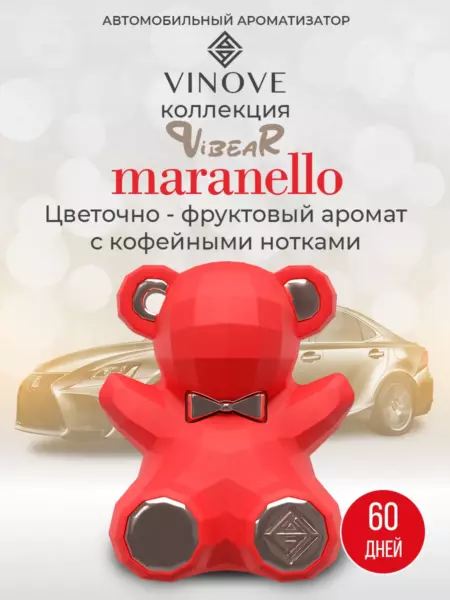 Долгий срок службы – не менее 60 дней интенсивной ароматизации достигнут за счёт использования уникального полимера, разработанного немецкими инженерами специально для бренда. Уникальный дизайн в виде милого медвежонка поднимает настроение одним своим видом. Великолепная парфюмерная композиция от французских мастеров. Демонстративно-позитивный, вызывающе яркий, фруктово-гурманский, сочный и громкий – а какой же ещё может быть характер у аромата, названного в честь города со штаб-квартирой FERRARI. Старт: перец, мандарин, груша Сердце: апельсин, жасмин Шлейф: кофе, ваниль Наличие в комплекте клипсы для крепления к решетке дефлектора и шнурка для подвешивания предоставляют множество вариантов использования. Коллекция линии включает в себя 8 эффектных ароматов и 8 ярких цветов. Каждой парфюмерной композиции соответствует свой цвет персонажа.
