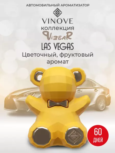 Долгий срок службы – не менее 60 дней интенсивной ароматизации достигнут за счёт использования уникального полимера, разработанного немецкими инженерами специально для бренда. Уникальный дизайн в виде милого медвежонка поднимает настроение одним своим видом. Великолепный аромат, созданный французскими мастерами, объединяющий свежесть цитрусов и остроту специй, пудровую сладость фиалки и утонченную нежность розы, обжигающую теплоту и насыщенность уда и амбры с роскошной терпко-пряной сладостью ванили. Старт: розовый перец, бергамот Сердце: фиалка, роза, амбра Шлейф: уд, ваниль, мускус Наличие в комплекте клипсы для крепления к решетке дефлектора и шнурка для подвешивания предоставляют множество вариантов использования. Коллекция линии включает в себя 8 эффектных ароматов и 8 ярких цветов. Каждой парфюмерной композиции соответствует свой цвет персонажа.