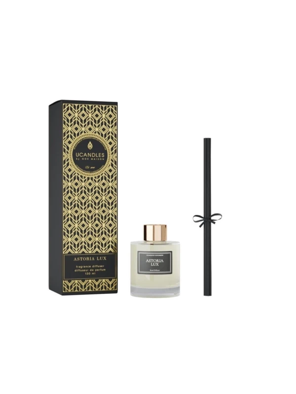 Диффузор 130 мл Astoria LuxБлагородная и притягательная композиция для тех, кто не терпит компромиссов. Древесные ноты кедра смешиваются с утончённым ароматом пачули и сандала. Вы словно оказались в дорогом отеле, где проведёте незабываемые дни отдыха. В отеле, куда всегда хочется возвращаться. Верхние нотыКедр, Нероли, Карамель Средние нотыСладкая вата, Ель, Пачули Базовые нотыСандал, Мускус, Амбра, Пачули Поместите палочки в масло и оставьте на 24-36 часов для того, чтобы ароматическая жидкость пропиталась и начала отдавать аромат. Ароматического диффузора должно хватить на 2-3 месяца. Переворачивайте палочки в диффузоре для поддержания стойкости аромата каждые 4-5 дней. Диффузор поставляется с 5 палочками. Вы можете менять интенсивность аромата количеством палочек, вставленных в жидкость. Чем больше палочек, тем интенсивнее аромат, но и более быстрое его испарение. Бренд: UCANDLES