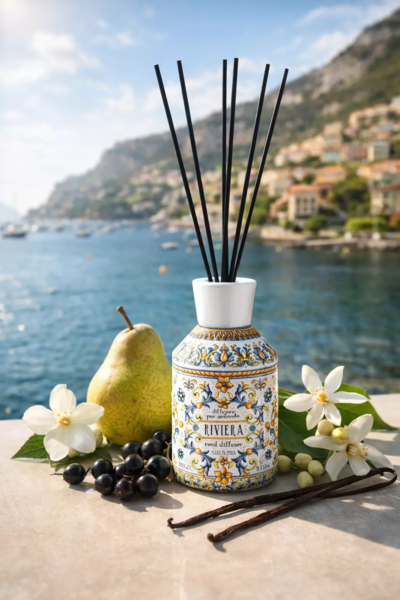 Еще одно популярное летнее направление — Лигурийская Ривьера, также известная как «Ривьера цветов». Среди всех итальянских регионов Лигурия вдохновила нас на создание еще одного романтического и нежного аромата, с характерными цветочными нотами жасмина, обрамленными нотами груши и черной смородины, и насыщенными , сладострастными нотами ванили и цветов апельсина. Верхние ноты: Черная смородина, груша грушелистная Средние ноты: Ирис, жасмин, цветок апельсина. Базовые ноты: Ваниль, бобы тонки, пралине пачули. Комплектация Ароматический диффузор с палочками