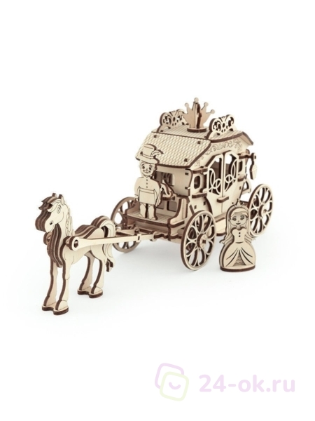 В набор входит: * Наждачная бумага. * Клей. * Подробная инструкция. В набор входит фигурка лошади, кучера и принцессы. У собранной модели вращаются колеса, открываются дверцы кареты . Наборы будут интересны для любых возрастов! Собирая конструктор развивается мелкая моторика! За сборкой вы получаете приятное времяпрепровождение, а готовая модель послужит не только игрушкой для Вашего ребенка, но и стильным украшением интерьера! Артикул: 0104; Количество деталей: 79; Размеры готового изделия: 270*85*135 мм; Разрешенный возраст: от 5 лет; Серия: Сказка