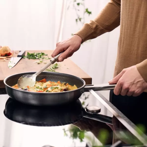 Цвет Черный, нержавеющая сталь Подходит для газовых, электрических, стеклокерамических, галогенных, индукционных плит, духовки (до 200 °C) Материал нержавеющая сталь 18/10 Ручка нержавеющая сталь Особенности антипригарное покрытие, можно замораживать в морозильной камере, можно мыть в посудомоечной машине Форма круглая Емкость 2,11 л Крышка нет Размеры 24 см (Ø)