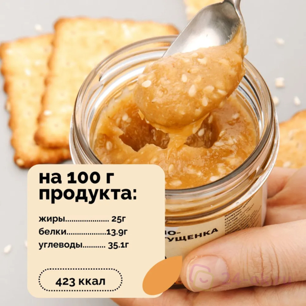 Состав: арахис обжаренный, сироп топинамбура, семена кунжута жареные белые, соль каменная гималайская КБЖУ:423 кКал / 1775 кДж Белки: 13,9 Жиры: 25 Углеводы: 35,1 Срок годности 12 месяцев