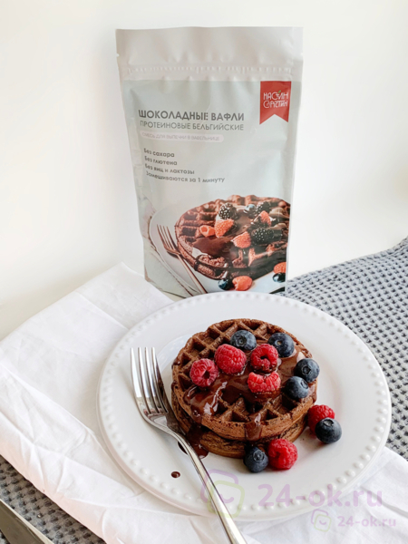 Описание Без белого сахара Без глютена Без яиц и лактозы Замешивается за 1 минуту Бельгийские, мягкие вафли - хрустящие снаружи и мягкие внутри, особое удовольствие на завтрак или перекус. Из этой смеси тесто приготовить очень быстро - за 1 минуту - только смешать с жирным (кокосовым молоком). Состав: изолят горохового белка, рисовая мука, кукурузная мука, кукурузный крахмал, мука зелёной гречки , эквадорский какао порошок нектар кокосовых соцветий (кокосовый сахар), сода пищевая, лимонная кислота, соль розовая гималайская. Из 200гр смеси получается 4 или больше вафель. Рецепт с кокосовым молоком Смесь - 200 г Кокосовое молоко (17-19% жирности) 240-280 г (в зависимости от консистенции молока) Рецепт с нежирным молоком Смесь - 200 г Молоко - 220 г Масло жидкое - 20 г Приготовление: Вафельницу нужно предварительно разогреть (по инструкции или до светового индикатора). В молоко комнатной температуры (или смесь молока и масла) добавить смесь, перемешать венчиком, тесто получается жидкое, как на оладьи, течет с венчика. Выложите половину теста для двух вафель, немного разровняйте, закройте вафельницу. Печь вафли нужно также по инструкции к вафельнице от 1-2 минут до 10, в зависимости от мощности вафельницы и желаемого цвета и корочки. Если требуется, вафельницу можно предварительно смазать маслом. Подавать вафли сразу со сладкими или несладкими топпингами. Пищевая ценность на 100г: 337 Ккал, 18,3 Б 2 Ж 65,4 У Пищевая ценность готовых вафель с кокосовым молоком на 100гр : 301,1 кКал, 9,9Б 2,4 Ж 33,5У Вес - 200гр