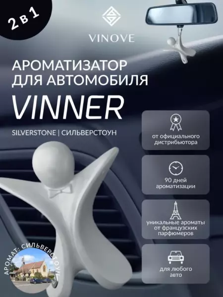 Жизнерадостность цитрусов, спокойное умиротворение древесных нот, торжес-твенное величие мускуса. Аромат не победы – триумфа! Стильный дизайнерский аксессуар для вашего автомобиля по впечатляюще демократичной цене. 2 варианта размещения — на решетке дефлектора или на зеркале. В комплекте клипса для крепления и шнурок для подвешивания. Беспрецедентно долгий срок службы – не менее 90 дней интенсивной ароматизации достигнут за счёт использования уникального полимера, разработанного немецкими инженерами специально для бренда. Уникальный дизайн в виде человечка с победно поднятыми вверх руками – настоящий талисман удачи для поездок за достижениями и победами! Великолепный аромат, созданный французскими мастерами – настоящая нишевая парфюмерия для вашего автомобиля. Громкая древесно-цитрусовая, пронизанная энергией и динамикой, композиция SILVERSTONE названа в честь одноименной трассы Формулы I, принимающей Гран-при Великобритании на протяжении последних 70 лет. Старт: лимон, свежескошенная трава, лаванда Сердце: кедр, флердоранж Шлейф: мускус, пачули, пудровые аккорды Коллекция линии включает в себя 6 эффектных ароматов и 6 ярких цветов. Каждой парфюмерной композиции соответствует свой цвет персонажа. Применение: При установке на решетку дефлектора регулируйте интенсивность, яркость и громкость звучания аромата, изменяя температуру и скорость воздушного потока. Всё просто — чем сильнее подача и выше температура воздуха, тем ярче запах. VINNER предназначен для единоразового использования. При значительном снижении интенсивности звучания замените ароматизатор на новый. Срок действия: 90 дней и более (в зависимости от интенсивности эксплуатации) Состав: EVA-термопластик, композиция аромамасел