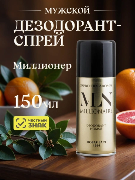 "Миллионер", парфюмированный дезодорант для мужчин, объем 150 мл Парфюмированный дезодорант дарит ощущение свежести и комфорта. Его формула гарантирует эффективную защиту в течение 24 часов.
