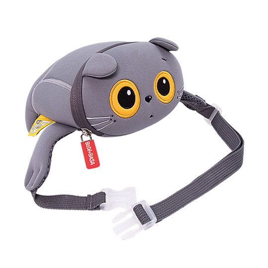 14*13*6 Милая поясная сумочка в виде котёнка Басика с большими круглыми глазами, загнутыми вперед ушками, хвостиком-пищалкой и обнимательными лапками. Компактная, легкая, красивого серебристо-пепельного цвета. Маленький помощник для больших свершений! Характеристики: - Материал неопрен. - Одно отделение застегивается на молнию. - Воздухопроницаемые спинка и лямочки. - Поясной ремень регулируется по длине, прочно фиксируется пряжкой-замком. - Хвостик с пищалкой. - Возраст 3+
