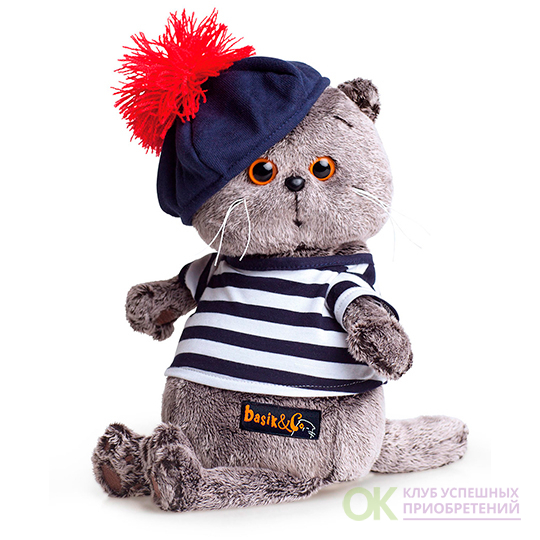Кот в матросском костюмчике. Тельняшка из хлопкового трикотажа и мягкий беретик с большим красным помпоном.