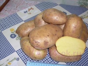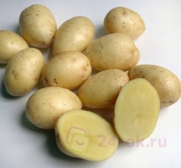 Раннеспелый, 80 дней после посадки. Клубни ровные, чуть продолговатые, массой 100-120 грамм. Глазки у картошки небольшие, почти незаметные. Урожайность сорта очень высокая. Имеет отличные вкусовые качества. Устойчив к фитофторозу и парше
