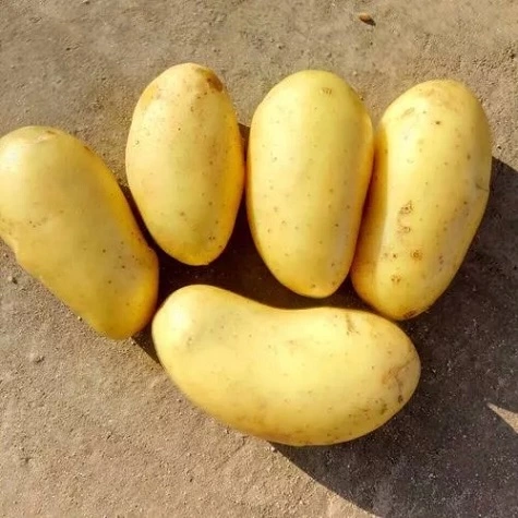 Куст средний или высокий, достигает примерно 80 см, образует от 6 до 16 корнеплодов. Форма плода удлиненно-овальная, в длину около 11 см. Средняя масса 80-150 г; кожица и мякоть желтые. На срезе не темнеет, при варке сохраняет форму.