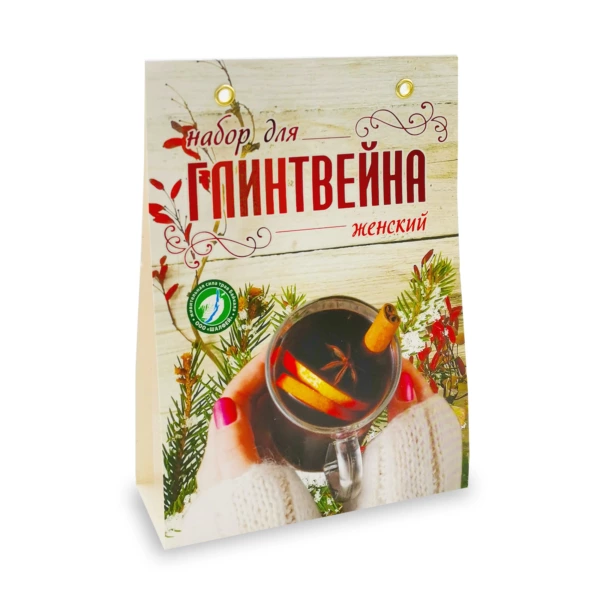 Благодаря своему приятному вкусу и аромату глинтвейн можно назвать одним из лучших зимних напитков. • Мгновенно согревает. • Помогает при бессоннице, депрессии. • Расширяет сосуды и усиливает кровообращение. Нормализует работу сердца. • Борется с простудными заболеваниями, лечит насморк, кашель, бронхит. • Обладает бактерицидными свойствами, благотворно влияет на желудок и кишечную флору. Женский Состав: изюм джамбо золотой, корица, яблоко, грейпфрут, груша, апельсин, имбирь, гвоздика, бадьян, мускатный орех молотый, тмин. Условия хранения: хранить при температуре не выше 25°С и относительной влажности воздуха не более 75%. Для глинтвейна подойдут сухие, полусухие и полусладкие вина. Глинтвейн нельзя доводить до кипения! Температура готовки должна быть не выше 70°С. Вам понадобится: красное вино (750 мл), 1 стакан воды (200 мл), 1 столовая ложка сахара, набор для глинтвейна. Пряности высыпать в турку, залить водой, довести до кипения и варить на медленном огне в течение 1 минуты, после чего дайте отвару настояться в течение 10 минут. Вино влить в кастрюлю, нагреть на медленном огне. Когда станет теплым добавить сахар, размешать, добавить пряности из турки. Еще подогреть, но не доводить до кипения. После – разлить по бокалам, пить горячим.