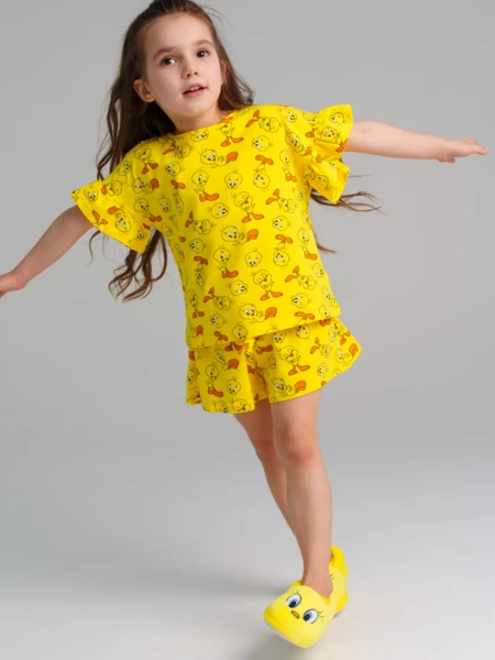 Пижама regular fit: футболка, шорты из качественного и приятного на ощупь трикотажа джерси. Высокое содержание хлопка 95%. Благодаря наличию эластана в составе ткани изделие проще в уходе и держит форму. Шорты с эластичным поясом со шнурком. Особенности ухода Максимальная температура стирки 30°С. Мягкий режим. Не отбеливать. Утюжить при температуре не более 110°С. Чистка запрещена. Не применять сушку в барабане. Стирать с вещами такой же окраски. Стирать вывернутым наизнанку. Не утюжить отделку. Предварительная стирка обязательна. Утюжить с изнаночной стороны.