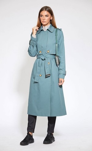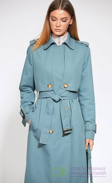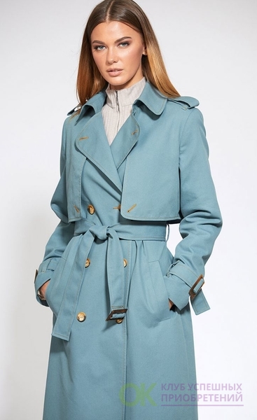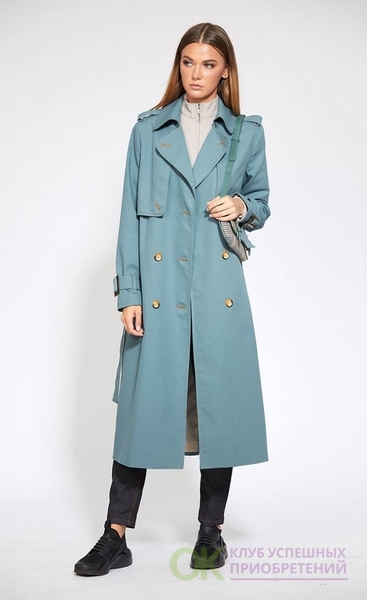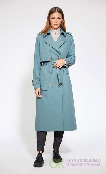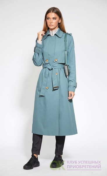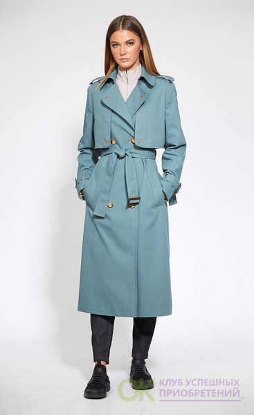 Сезон: Мультисезон, Рост: 170см., Состав ткани: Хлопок 72%; ПЭ 26%; ПУ 2%; подкладка- ПЭ 100%., Тип одежды: Верхняя одежда Описание: Цвет: серо-мятный. Плащ выполнен из однотонной х/б ткани. Плащ двубортный, с застёжкой на пуговицы, воротник на притачной стойке. По переду и спинке отлетные детали в виде кокеток. По переду прорезные карманы с листочкой. Рукав втачной с патами, застёгивающимися на пряжку. По плечевым швам погоны пристёгиваются на пуговицу. Плащ на подкладке. Длина плаща: р.44-48 - 117 см, р.50-54 - 119 см. Длина рукава: р.44-48 - 61,5 см, р.50-54 - 63 см.