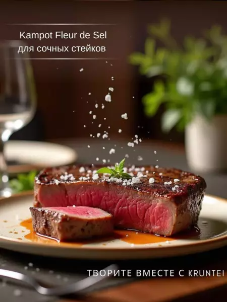 Kampot Fleur de Sel — это легкие кристаллы соли, которые хранят вкус моря и будут являться уникальным оттеночным ингредиентом и украшением для мясных и рыбных стейков, салатов, десертов и коктейлей.