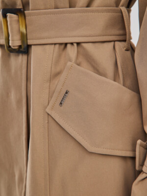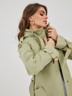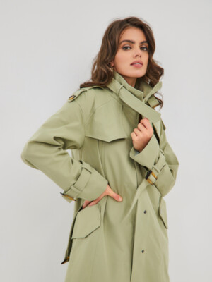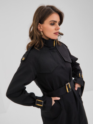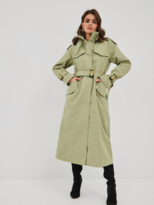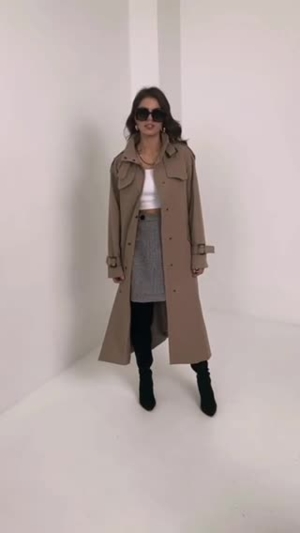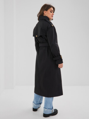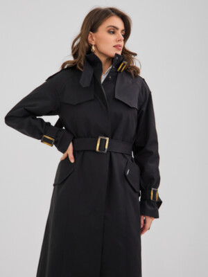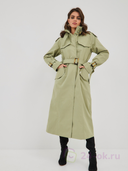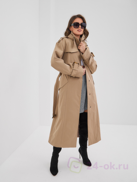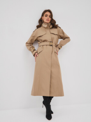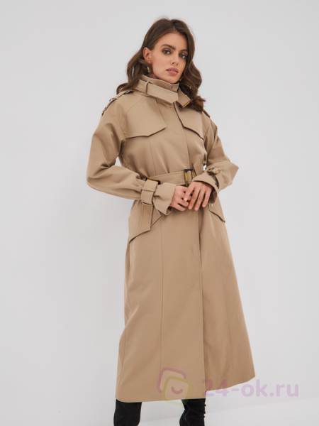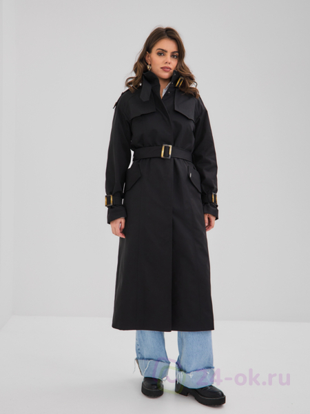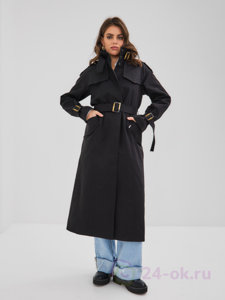 Длинный плащ свободного силуэта с застежкой на потайных кнопках, по переду