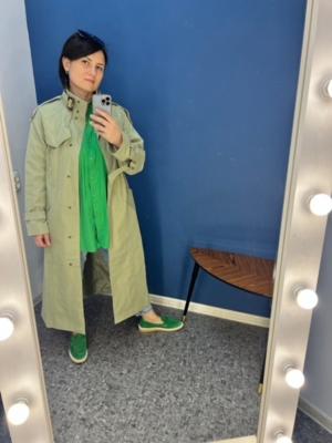 и спинке отлетные кокетки. На рукавах присутствуют регулирующиеся