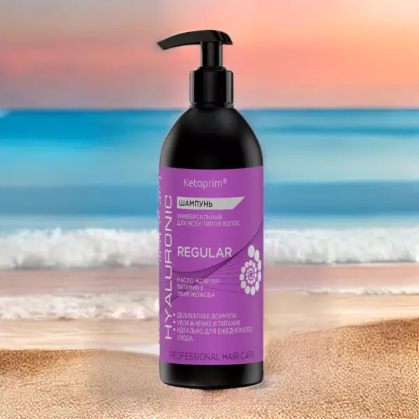 Гиалуроновый шампунь Ketoprim Регуляр для ежедневного ухода за всеми типами волос. С маслом жожоба, витамином E, эфиром жожоба.