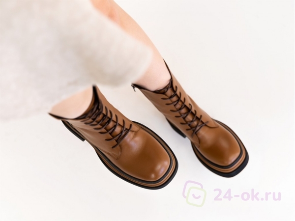 Ботинки коричневые (таба) кожаные на байке