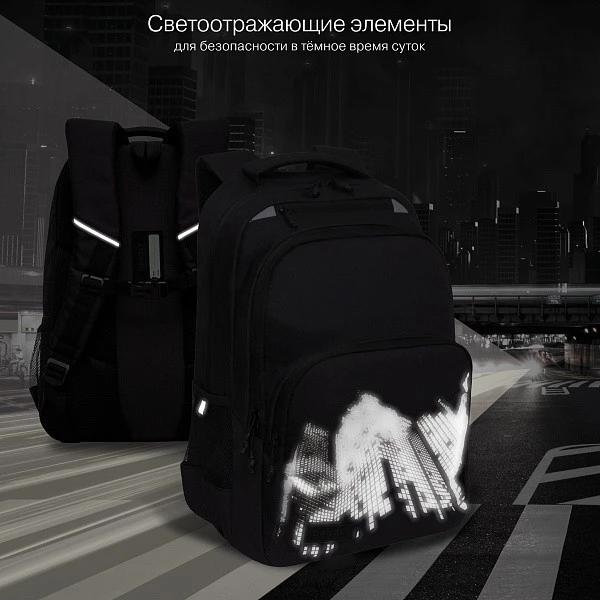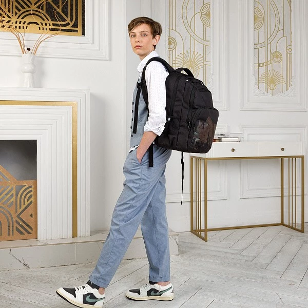 Эту серию рюкзаков GRIZZLY мы разработали для мальчиков старших классов. Они рассчитаны на рост от 150 см. Рюкзаки яркие и стильные — нравятся подросткам. Рюкзак сделан из плотного полиэстера и хорошо держит форму. Есть светоотражающие элементы. Все швы аккуратно прошиты, а где это нужно, усилены дополнительно. Допустимая нагрузка — 7 кг. Чтобы от такого веса не пострадала осанка, мы сделали анатомическую спинку. Широкие лямки с нагрудной стяжкой со свистком снижают нагрузку на плечи. Несмотря на то, что подросткам приходится носить с собой много вещей, в школьный рюкзак они помещаются. Здесь есть два больших основных отделения для книг, тетрадей и папок А4. Много внутренних и внешних карманов, пенал, брелок для ключей, отделение быстрого доступа для документов и кошелька. Материал рюкзака с водо- и грязеотталкивающей пропиткой. Если рюкзак все же чем-то испачкался, мы рекомендуем ручную стирку в холодной воде.