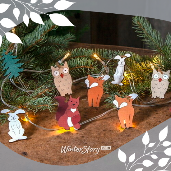 Красочные насадки гирлянды в виде зверушек и теплый белый