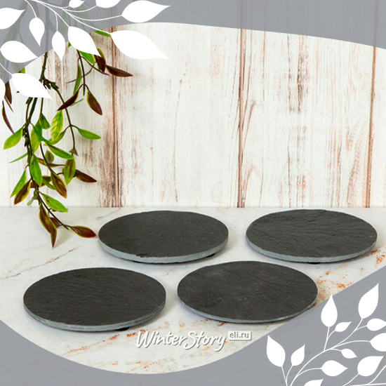 Подставка из сланца 10 см круглая, 4 шт