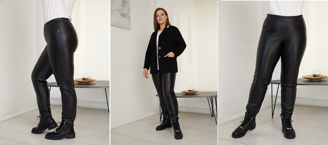Элегантные утепленные брюки из эко кожи со стрейчем.