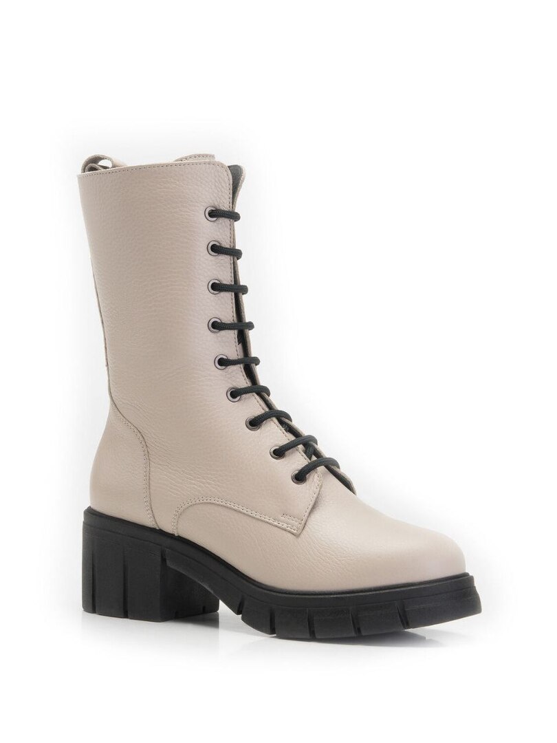 Бежевые высокие ботинки на шнуровке