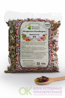 Состав: Ежевики листья, Репешка трава, Мяты листья, Зверобоя трава, Девясила корень и корневища, Шиповника плоды, Боярышника плоды, Бес-смертника цветки