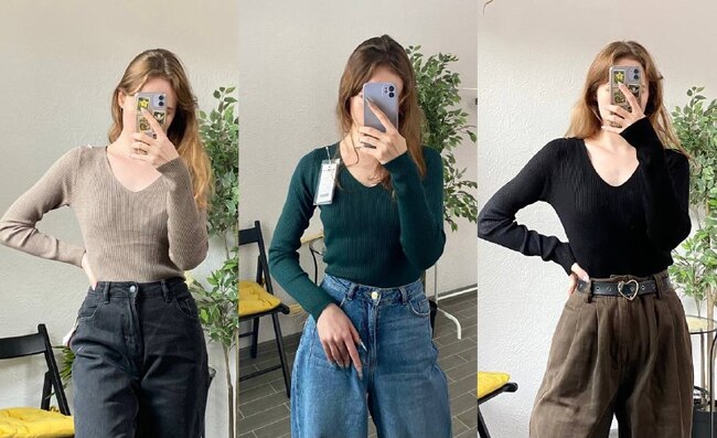 Модель в рубчик с V-образным вырезом красиво подчеркнёт фигуру!