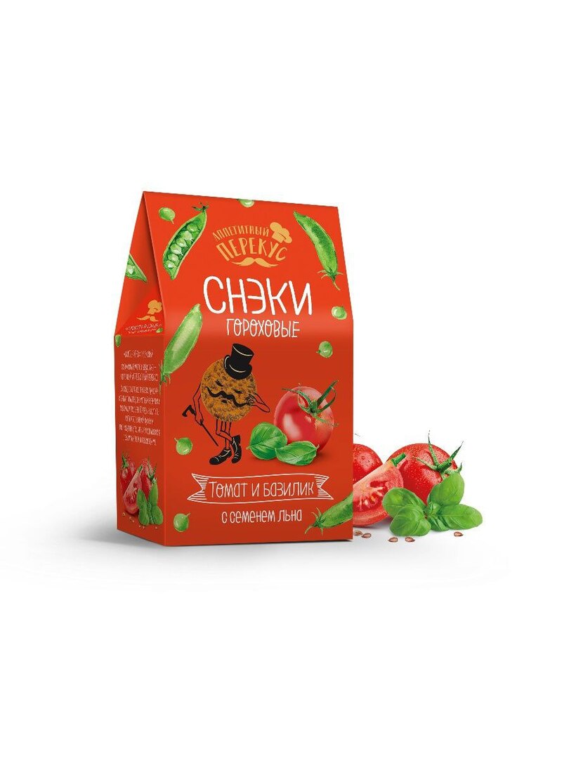 Необычный и интересный вариант перекуса - гороховый снек с добавлением полезных семян льна и натуральным итальянским вкусом томата и базилика.