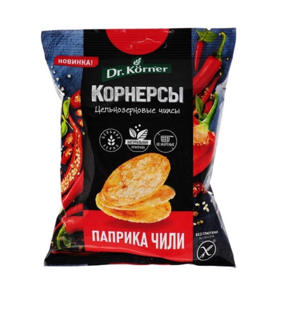 Цельнозерновые кукурузно-рисовые чипсы - полезная альтернатива обычным чипсам. Приятный вкус паприки и небольшая остринка чили стоят того, чтобы попробовать этот вкусный снек!