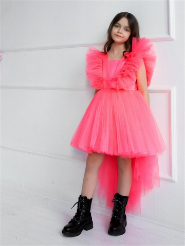 Роскошное платье с длинной каскадной юбкой из фатина со шлейфом