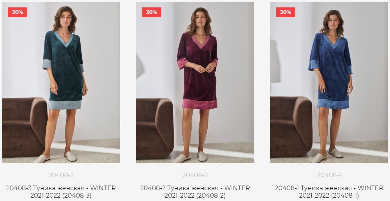 В распродаже Одежда для дома доступны к заказу велюровые туники по 1-2 штуки на размер