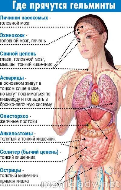 Кроме того, гниение погибших в организме особей может привести к отравлению токсинами. А это причина аллергий, головных болей, хронической усталости.