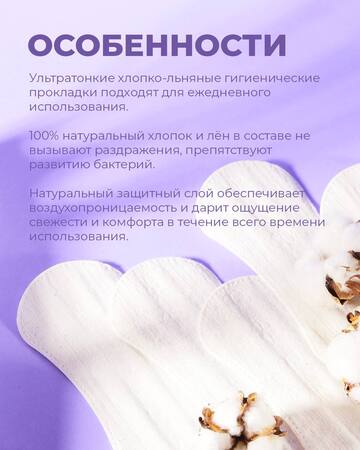 Ультратонкие хлопко-льняные гигиенические прокладки прекрасно подойдут для ежедневного использования.