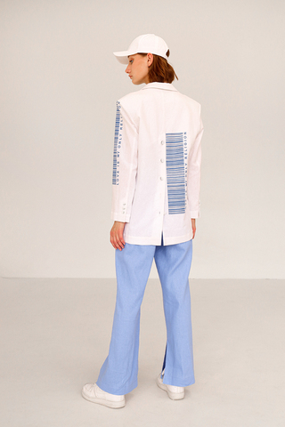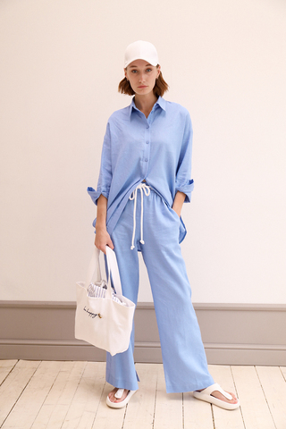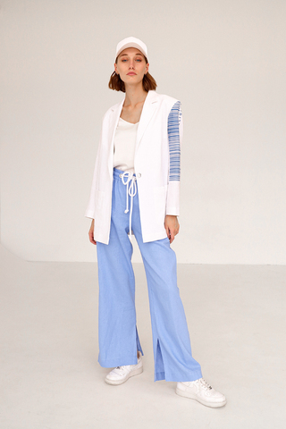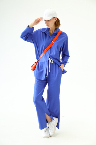 55% лен, 45% вискоза. Брючки к жакетам тоже есть в таком же стиле