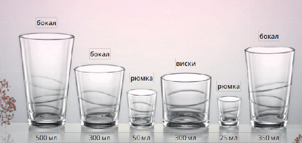 которых давно не хватало в нашем ассортименте. Я добавил классическую рюмку для виски и три бокала разной величины.