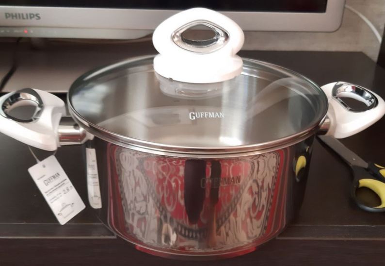 Комбинированная обработка материалов придает уникальность дизайну кастрюли: поверхность снаружи глянцевая, а внутри кастрюля матовая.