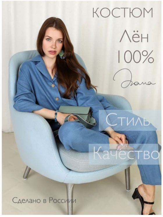 Шикарный льняной костюм в серо-голубом цвете