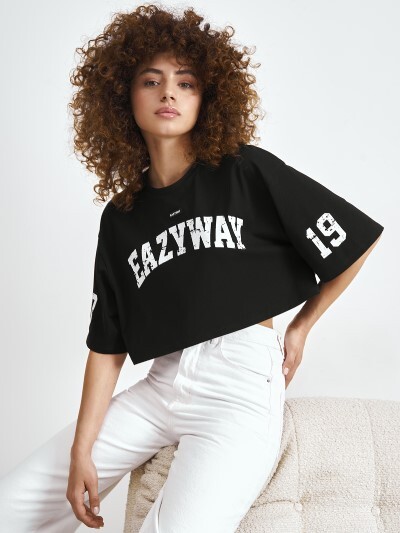 Укороченная черная футболка оверсайз с брендингом на груди- 24-ok.ru/purchase/563615/lot/1583565520