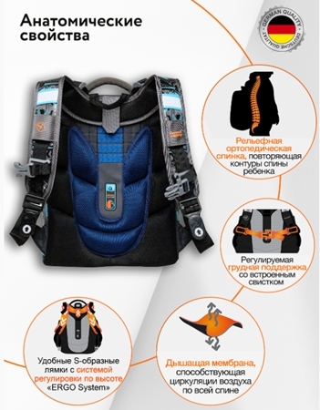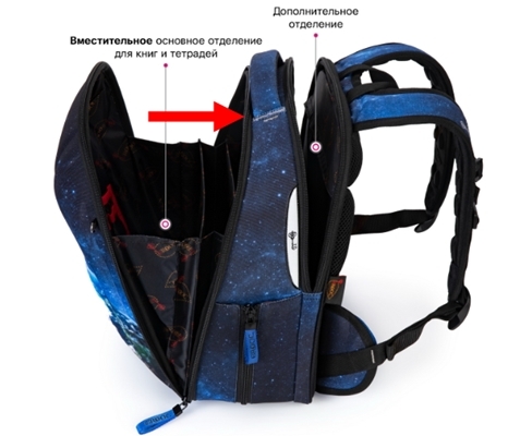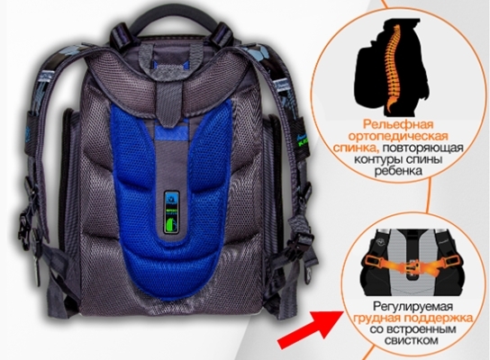 Суть в том, что в спинку была интегрированная боковая поддержка (мягкие ушки), которая автоматически при натяжении плечевых лямок подтягивает мягкие боковые ушки к пояснице ребенка, независимо от комплекции ребенка она надежно охватывает поясницу и не дает ранцу смещаться по спине. И все, без лишних карабинов, лишних элементов, которые нужно отдельно застегивать. Все гениально и просто: надел на плечи ранец и все произошло само собой.