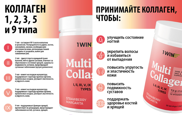 Экстренная компенсация дефицита коллагена в организме - Мульти коллаген с витамином C от 1WIN