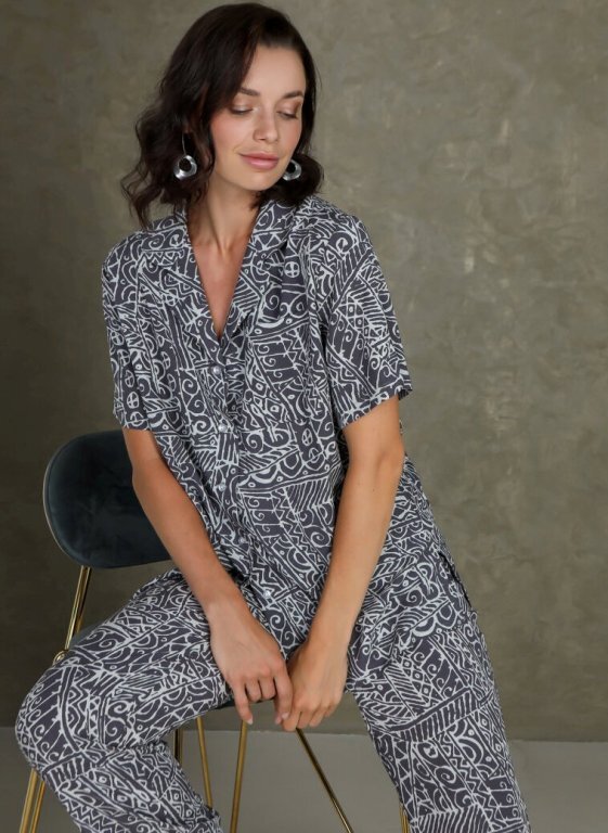 Приятная к телу майка из вискозы и удобные брюки на резинке, с карманами.