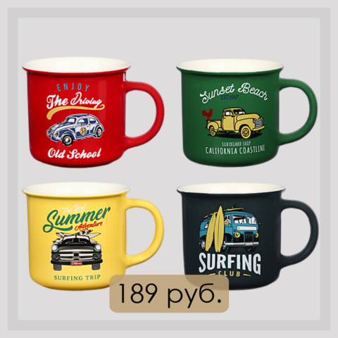 Круж ка 270мл, фарфор, "Винтаж", 4 цвета