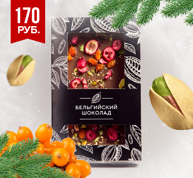 Молочный шоколад с клюквой, облепихой и фисташками